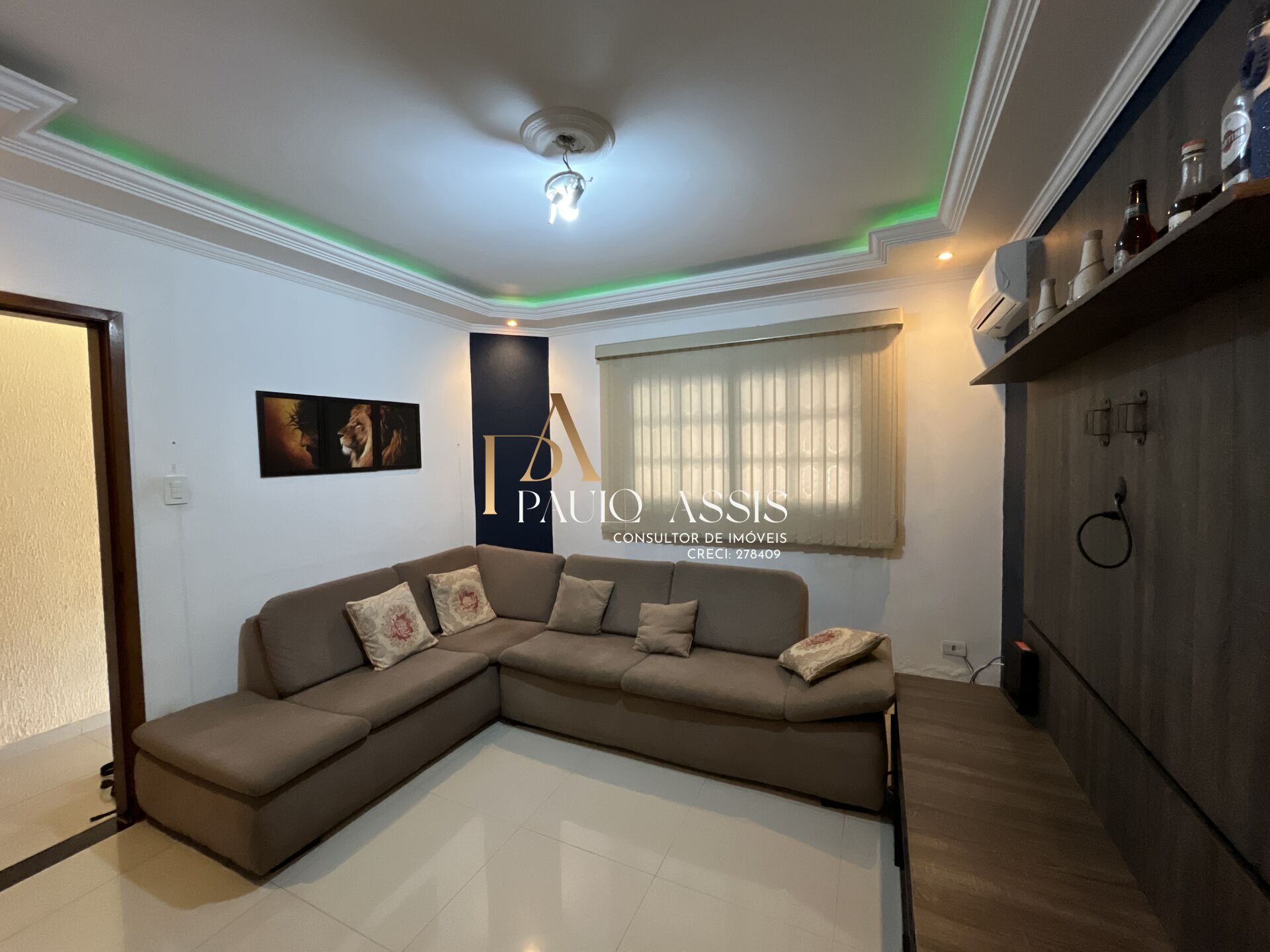 - Sala de estar de TV com teto rebaixado , cozinha planejada com fino acabamento.