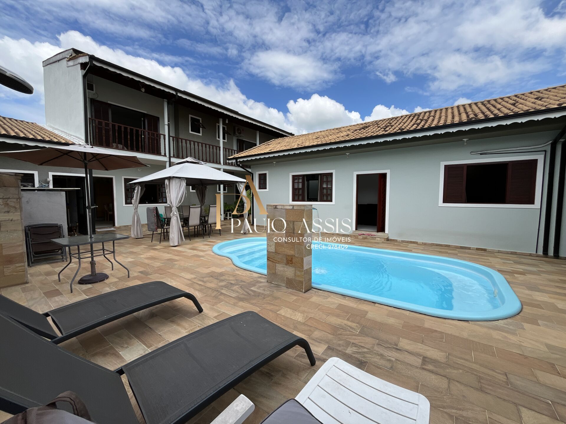 Casa da frente conta com uma ampla suíte com planejados e banheira de hidromassagem, Cozinha Americana, Sala de estar , lavabo e área de serviço ,contanto as duas casas esta residência conta com uma área construída de 272m², perfeita para acomodar toda a sua família com conforto e privacidade.