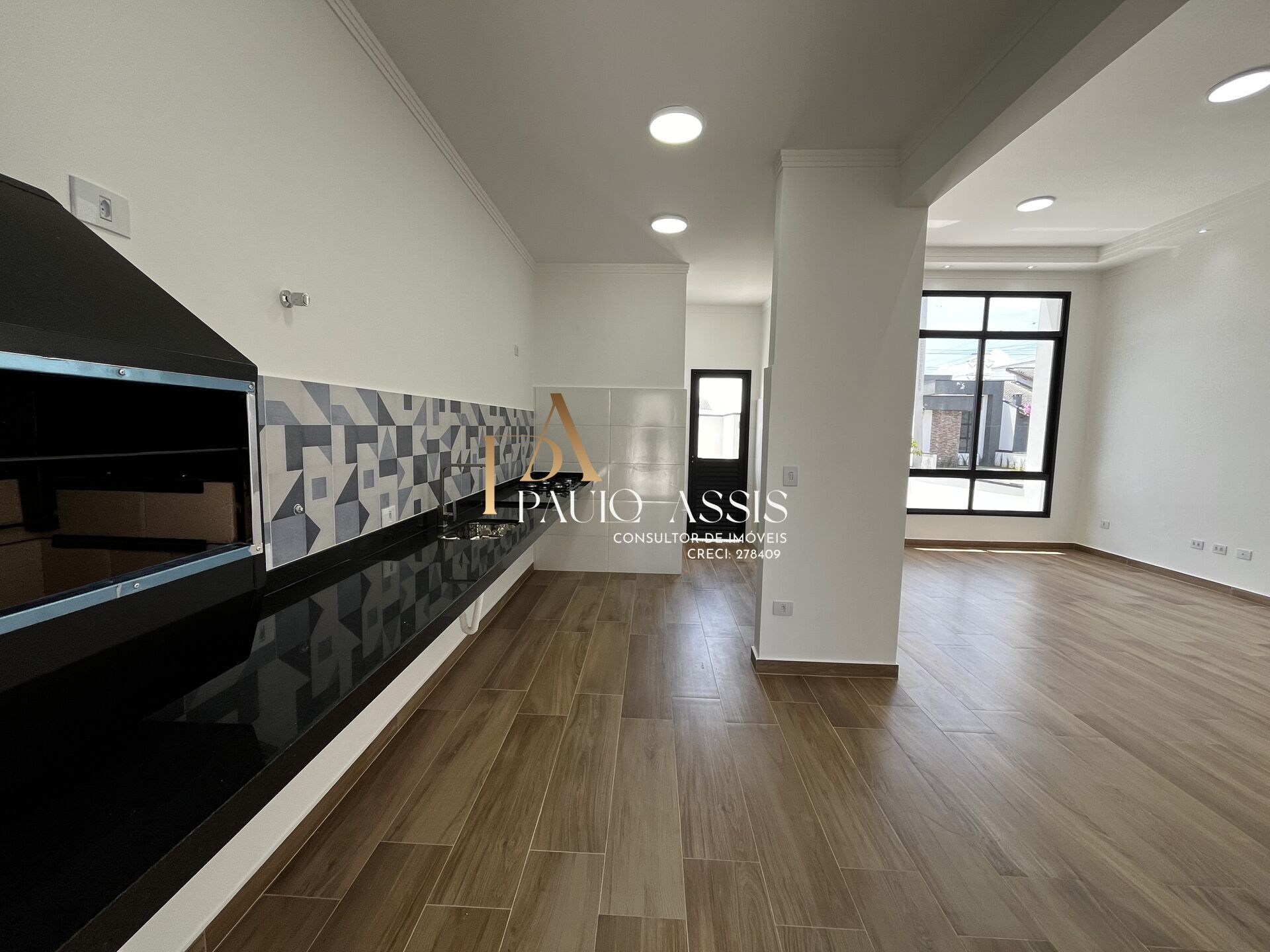📐A área construída de 114m² conta cozinha gourmet com churrasqueira.